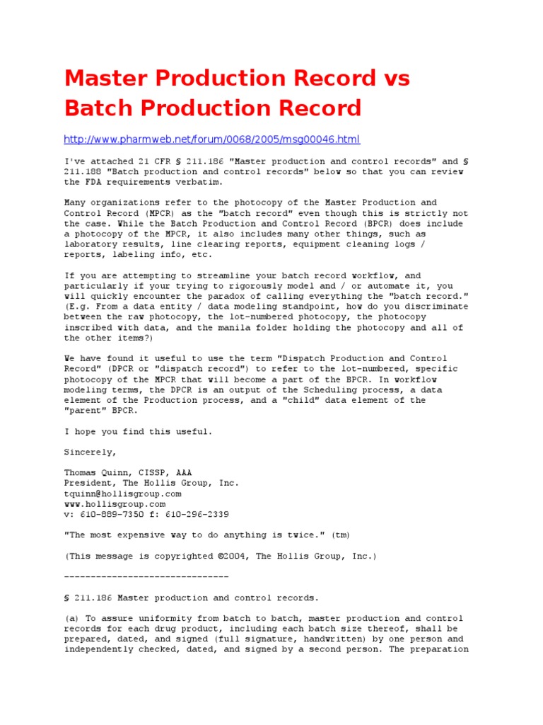 Master Production Record vs Batch Production Record Technology Business